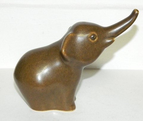 Figur af elefant i keramik. Dækket af brun glasur. Udført af Knud Basse (1916-1991) på Bornholm. Fremstår i perfekt stand. Signeret KB på undersiden af figuren. 11½ cm høj og 15 cm lang.