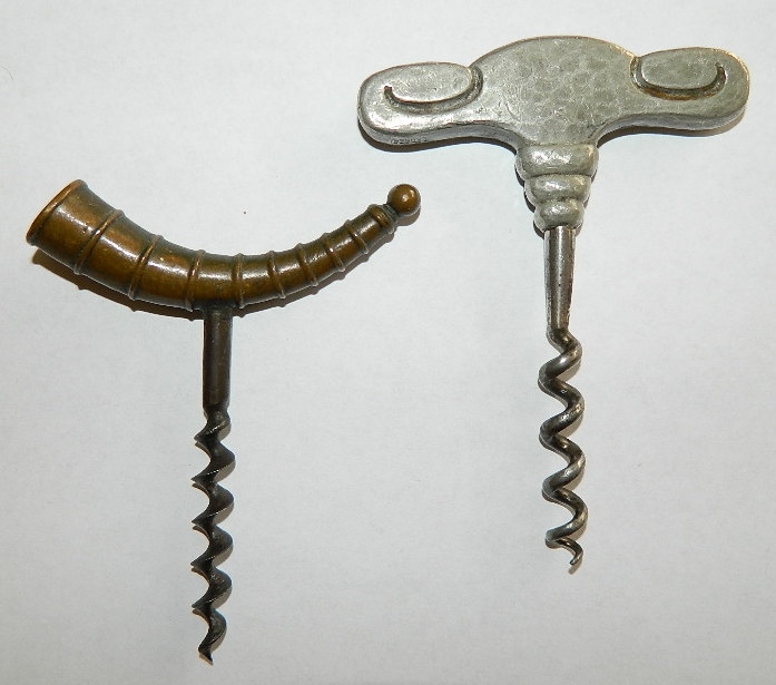 Par proptrækkere: Guldhorn-proptrækker i bronce samt proptrækker i tin dekoreret i skønvirkestil. Tinproptrækkeren er stemplet. I god stand uden skader eller reparationer. Fremstillet i 1920´erne.