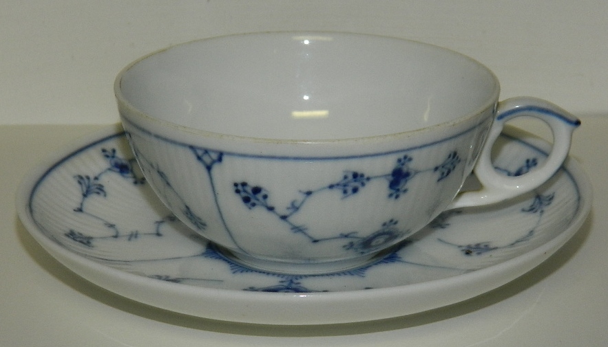Tekop i musselmalet porcelæn fra Royal Copenhagen. Modelnummer 1/76. Fremstår i perfekt stand. 1. sortering. Koppen er 4½ cm høj. (fire sæt haves)