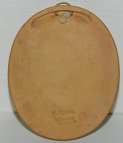 Oval platte i teracotta fra P. Ipsen med Bertel Thorvaldsen motiv fra 19. århundrede