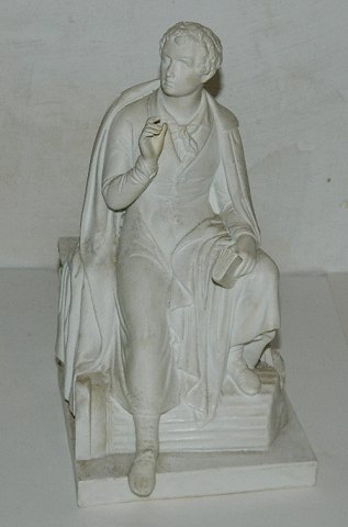 Figur i bisquit af Lord Byron fra Royal Copenhagen. efter statue modelleret af Bertel Thorvaldsen i Rom 1831. Figuren fremstår i perfekt stand. Fremstillet omkring 1860-80. Fabriksmærket på bagsiden af soklen, der måler 13½ cm x 13½ cm. Figuren er 25½ cm høj.