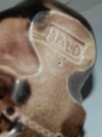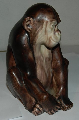 Figur af chimpanse i keramik af Peder Hald (1892-1987). Fremstår i perfekt stand. Ingen skader eller reparationer. Kunstnersignatur på bunden. 15 cm høj.