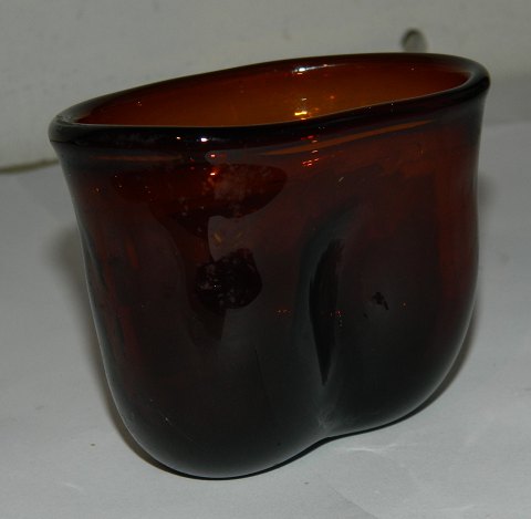 Vase eller bæger i brunt glas fra Holmegaard. Designet af Per Lütken. Fremstår i perfekt stand. Ingen skader eller reparationer. Fabriksmærke samt kunstnersignatur og modelnummer indridset på undersiden. 7 cm høj.