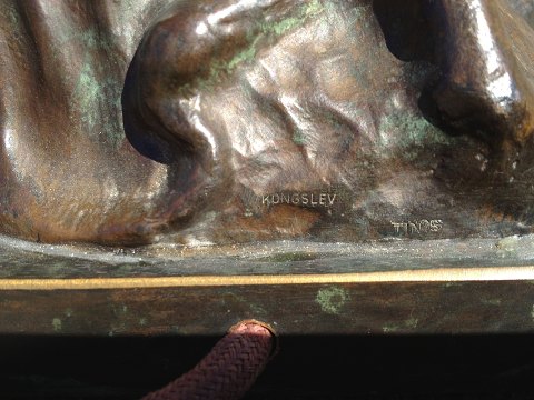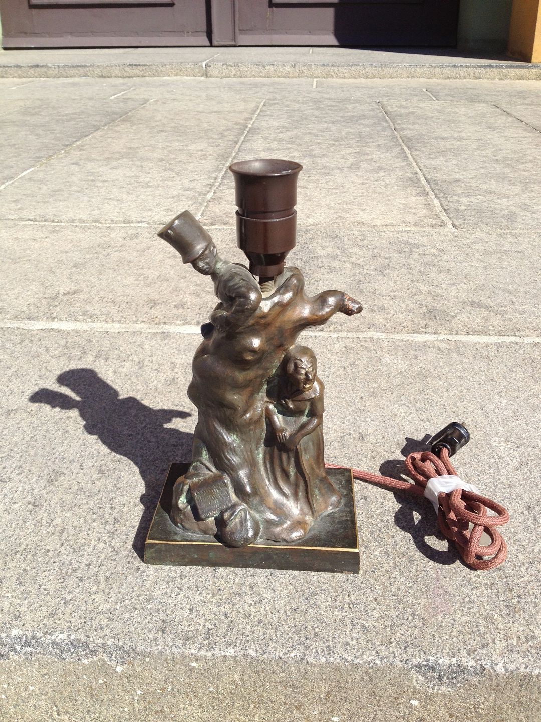 Fyrtøjet af H. C. Andersen: Eventyrfigur i bronze på lampefod. Fremstår i god stand. Stemplet KONGSLEV samt TINOS. 27,5 cm høj