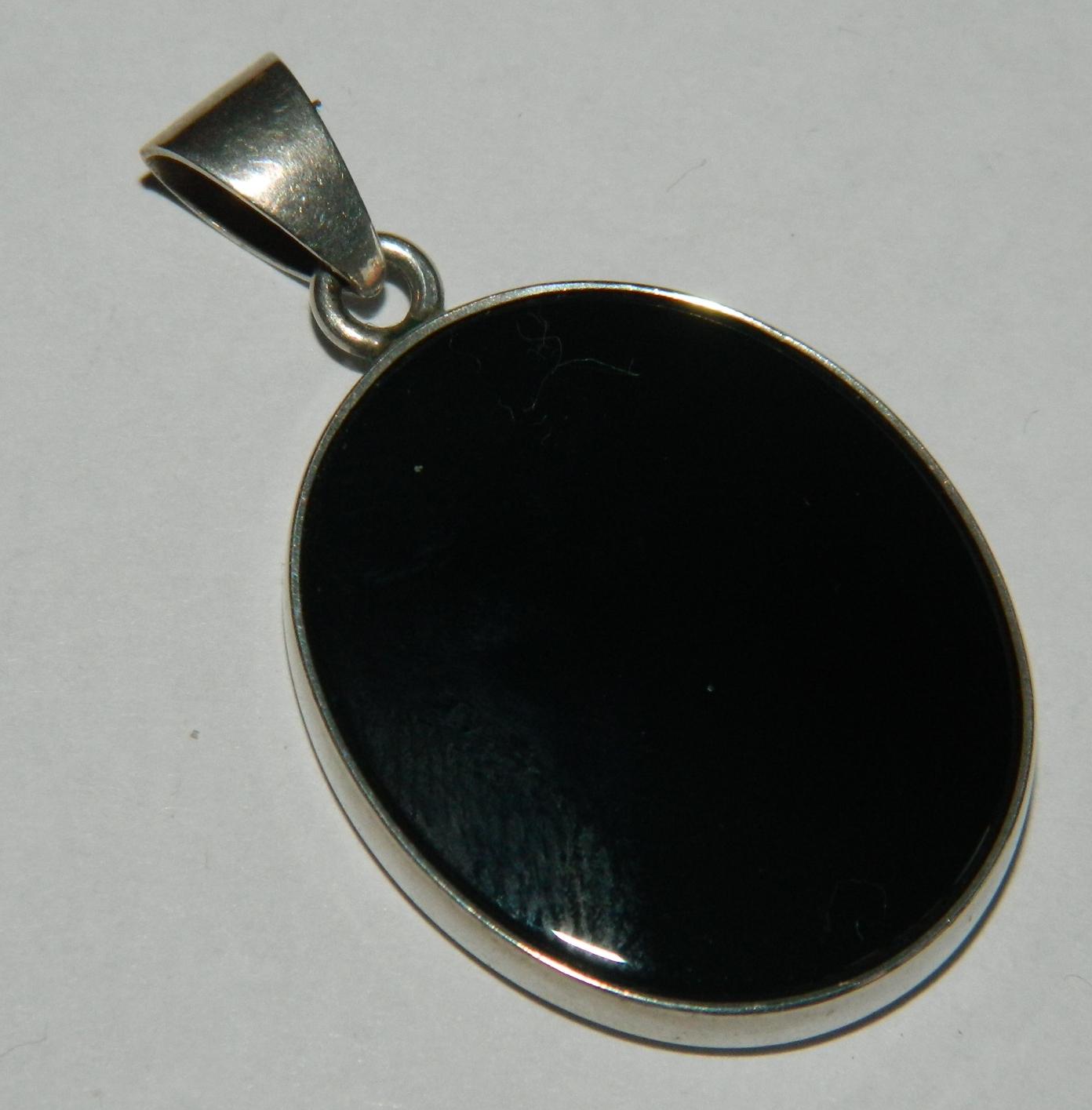 Sterling silver pendant with black stone of NE From. Stamped on the back Dimensions: 3 ½ cm x 2 cm.