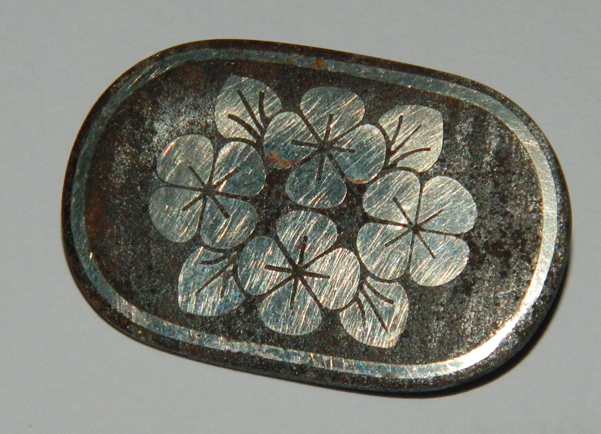 Brooch in iron with decoration of flowers in silver Designed by Harald Nielsen. Made around 1940. Is a Little rusty as the Pictures shows. Stamped and designnr. 5028 and HN. Dimensions: 3 ½ cm x 2 cm.