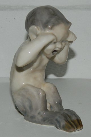 Grædende pan-figur i porcelæn af Knud Kyhn for Royal Copenhagen. Modelnummer 1061. Produceret mellem 1900-23. Fremstår i perfekt stand. 1. sortering. Fabriksmærket på bunden. 11 cm høj. LIGNENDE KØBES