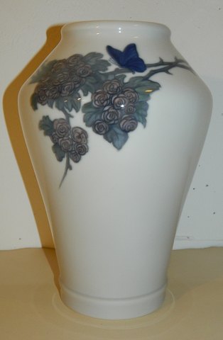 Stor vase i porcelæn fra Royal Copenhagen med dekoration af roser og blade samt sommerfugle. Fremstår i perfekt stand uden skader eller reparationer. 28 cm høj.