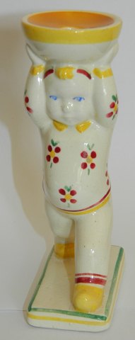 Figur fra Aluminia fabrikken forestillende nisse med grødskål på hovedet. Fremstår i god stand uden skader eller reparationer. Fabriksmærket på bunden. 14-14½ cm høj