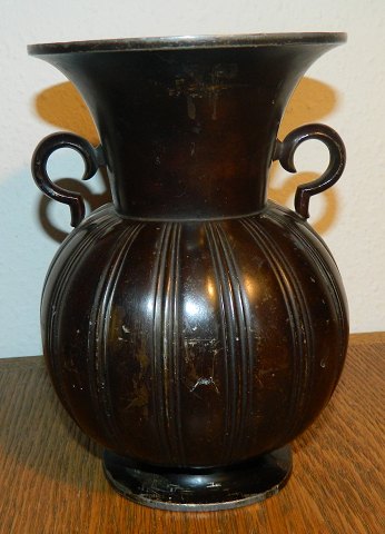 Tung vase med hanke i diskometal af Just Andersen ca. 1940. Fremstår med brugsslid som fremgår af billederne. Modelnummer 1925. Ingen skader eller reparationer. H: 21 cm og Ø: 13½ Instagram #temaantik