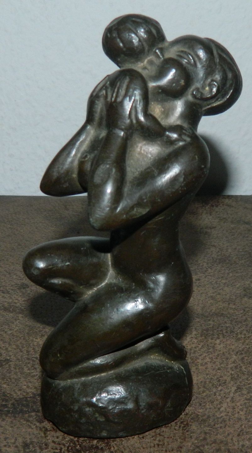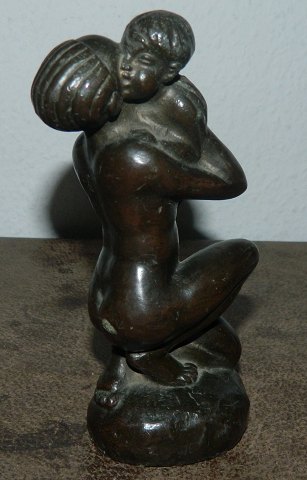 Figur i metal af mor og barn. Broncepatineret på overfladen. Ubekendt kunstner. Ingen fabriksmærke. Fremstillet ca. 1940. H. 15 cm