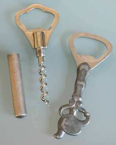 Proptrækker -og oplukker i sølv samt oplukker fra Just A. i tin