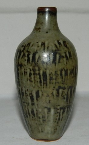 Japansk inspiration: Kgl. firesiddet vase i krakkeleret glasur i porcelæn med delikat dekoration af blomster, bladværk og sommerfugle i blå farver og guld. Fremstillet ca. 1940. Fremstår i perfekt stand. 1. sortering. Fabriksmærket på bunden. Vasen er 9½ cm høj