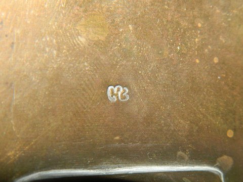 Billedramme til tre foto´s i tin fra omkring 1900. Glassene mangler. Bagbeklædning i messing. Dekoreret i skønvirkestil. Fremstillet hos Mogens Ballin (1871-1914) på hans eget værksted. Ingen skader eller reparationer. Fabriksmærket med MB uden modelnummer. Mål: 9 cm høj og 20 cm lang.
