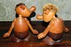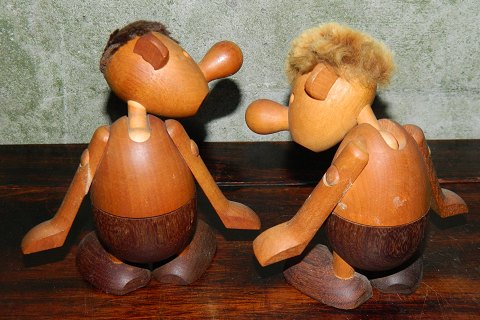 To stk. vintage figurer af "Strit" fra Hans Bølling´s værksted. Begge med brækket venstre arm. Flot patina, men noget slidt i hårpragten ! Begge fabriksmærket på undersiden af den ene fod med HANS BØLLING ØRSKOV & CO. DENMARK. Begge 13½ cm høje. SÆLGES SAMLET