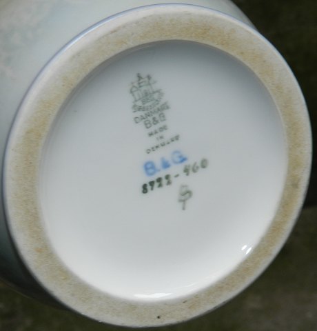 B&G vase i porcelæn med landskabsmotiv med bl.a. mølle