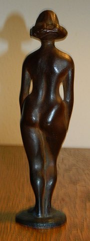 Figur af stående nøgen kvinde udført i bronce af den danske billedhugger Carl Vilhelm Nielsen (1890 - 1961) Unika arbejde. Fremstår i perfekt stand. 22½ cm høj Stemplet.: C.V.N. Fremstillet omkring 1930.