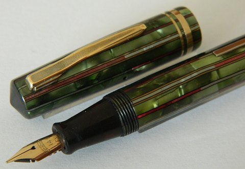 Grøn marmoreret/grå stribet Wahl Eversharp fyldepen 1940´erne