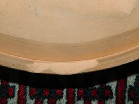 Bemalet platte i terracotta fra Peter Ipsen, Kjøbenhavn. Motiv af Bertel Thorvaldsen (1770-1844) med "Herkules modtager udødelighedens drik af Hebe". Har et par små skår. Fremstillet omkring 1870. Fabriksmærket på bagsiden med P. Ipsen samt modelnummer. Mål: 22½ cm i diameter.