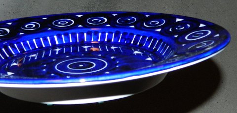 Stort Arabia "Valencia" Blåg & Hvidt fad i porcelæn. Designet af Ulla Procope. Fremstår i perfekt stand uden skader eller reparationer. Fabriksmærket på bagsiden. Mål: 5 cm højt og 35½ cm i diameter.