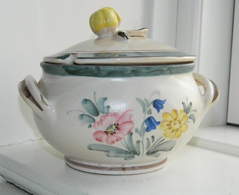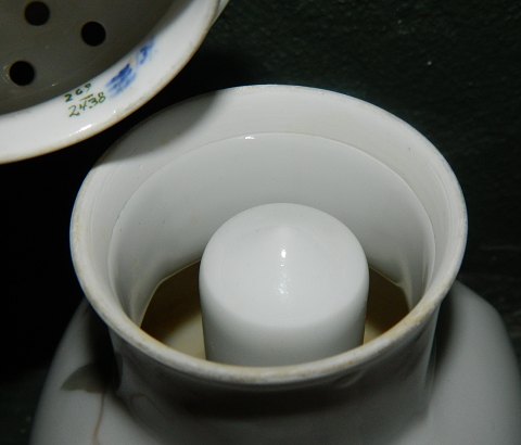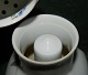Ozon-lampe i porcelæn fra Royal Copenhagen stående på seks fødder. Låg i porcelæn gennemhullet af hensyn til varmen fra lampen. Fremstillet omkring 1900 i skønvirkeperioden. Fremstår i god stand uden skader eller reparationer. Fabriksmærket på undersiden. 18 cm høj.