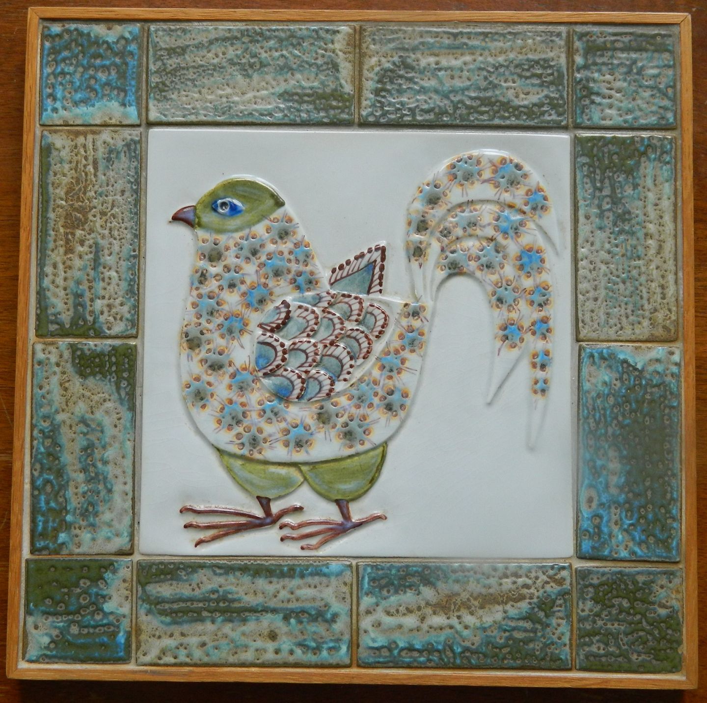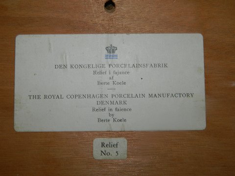 Kakler fra Royal Copenhagen. Relief med fugl udført af Bente Koele for Royal Copenhagen indlagt i ramme af træ. Ingen skader eller reparationer. Fabriksmærkat på bagsiden. Mål: 24 x 24 cm.