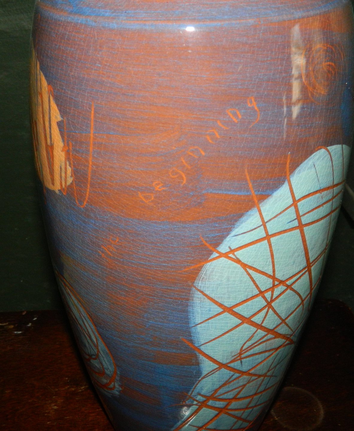 Stor vase i keramik fra Kähler fabrikken i Næstved. Dekoration af Ole Bach Sørensen omkring 2000. Fremstår i god stand. Ingen skader eller reparationer. Mål: 39½ cm høj.