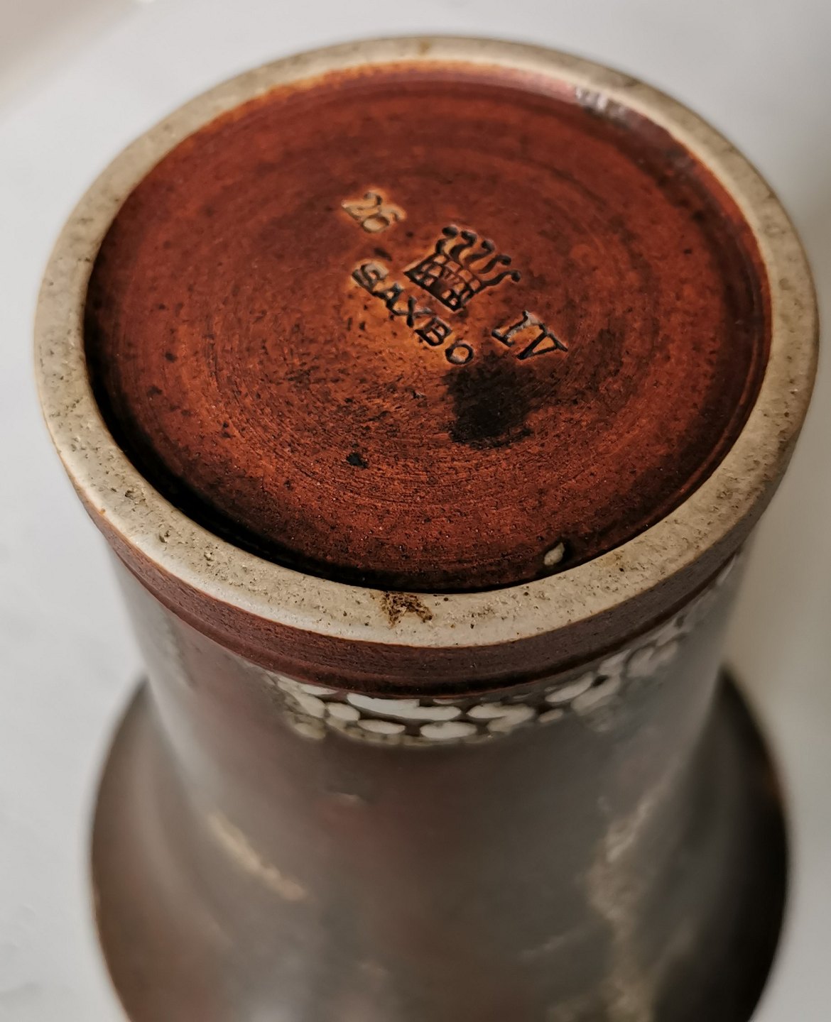 Tidlig Saxbo vase i stentøj fra ca. 1930. I perfekt stand. Ingen skader eller reparationer. Fabriksmærket på bunden. H. 18½ cm Ø. 15½ cm.