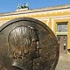 Billedhuggeren Bertel Thorvaldsen (1770-1844) portræt i relief i profil på sort platte i jern. Fremstår i god stand uden skader eller reparationer. Spor af rust på forsiden. Mål: H. 1½ cm Ø. 27½ cm.