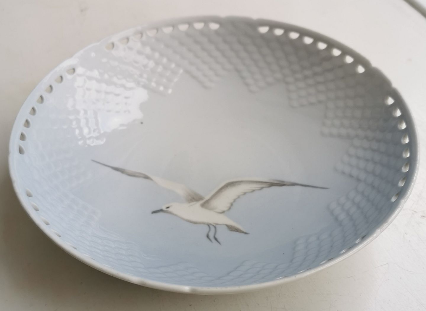 Skål i porcelæn fra Bing & Grøndahl. Helblonde fra Mågestellet. Fremstår i god stand uden skader eller reparationer. Fremstillet i begyndelsen af 20. århundrede. Fabriksmærket på bunden. Mål: H. 5-5½ cm Ø. 20 cm.