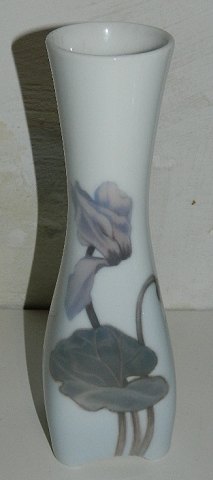 Høj Slank dråbeformet vase i porcelæn med par hanke. Dekoreret med muslingeskaller rundt om vasen. Fremstillet omkring 1910. Fremstår i perfekt stand. Fabriksmærket på bunden med PORSGRUND NORGE. H. 22 cm.