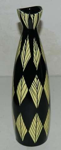 SKØNVIRKESTIL: Krukke i keramik fra den københavnske lervarefabrik Peter Ipsens Enke. Formgivet af Karen Hagen i 1909. Orange med sort ornamentik i relief samt dekorative hanke. Fremstår i absolut perfekt stand. Fabriksmærket på bunden med bl.a modelnummer 710. Mål: H. 16½ cm.