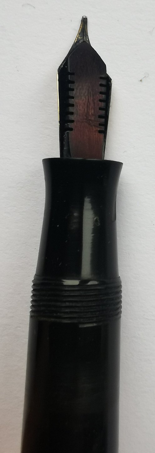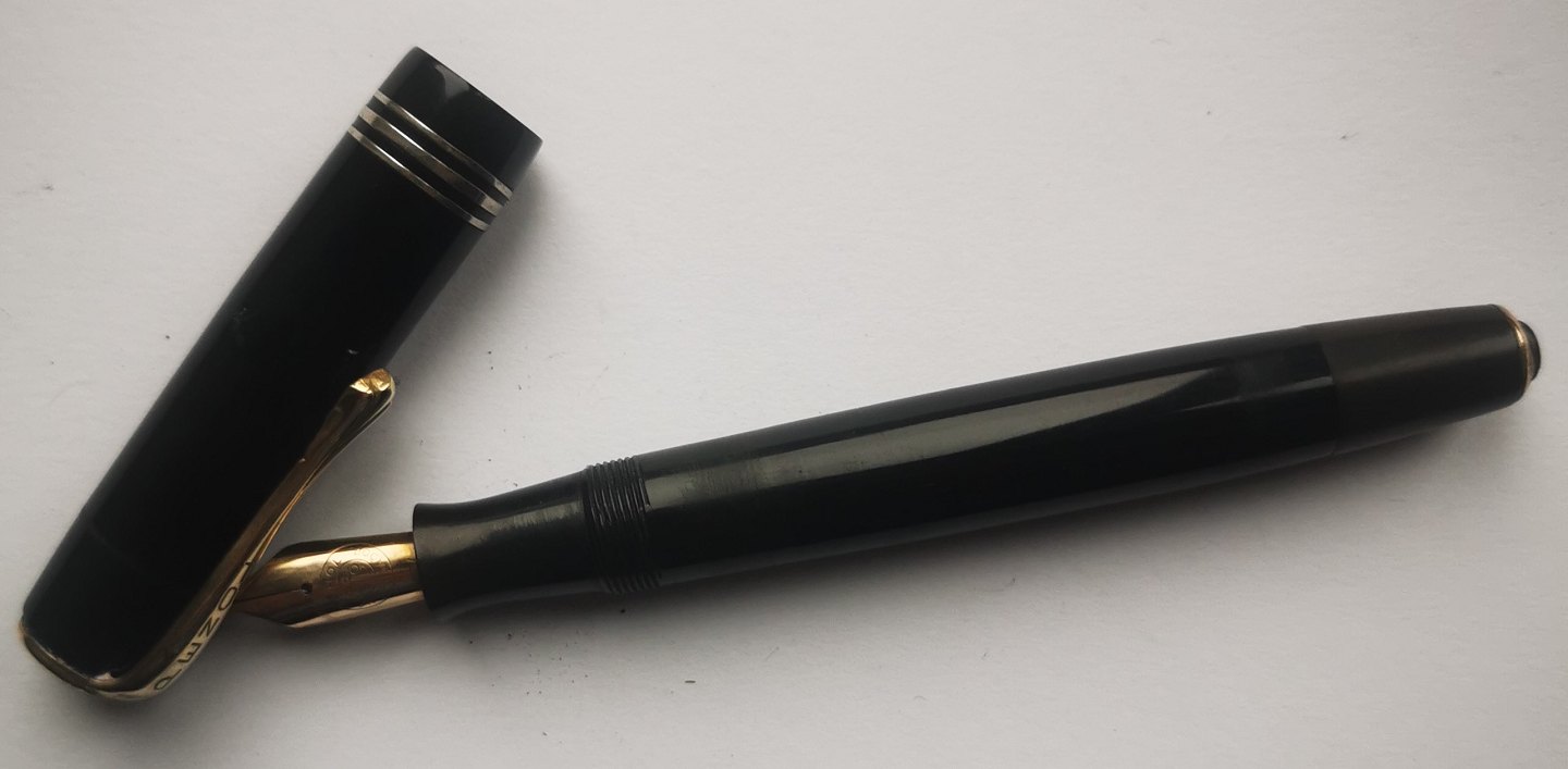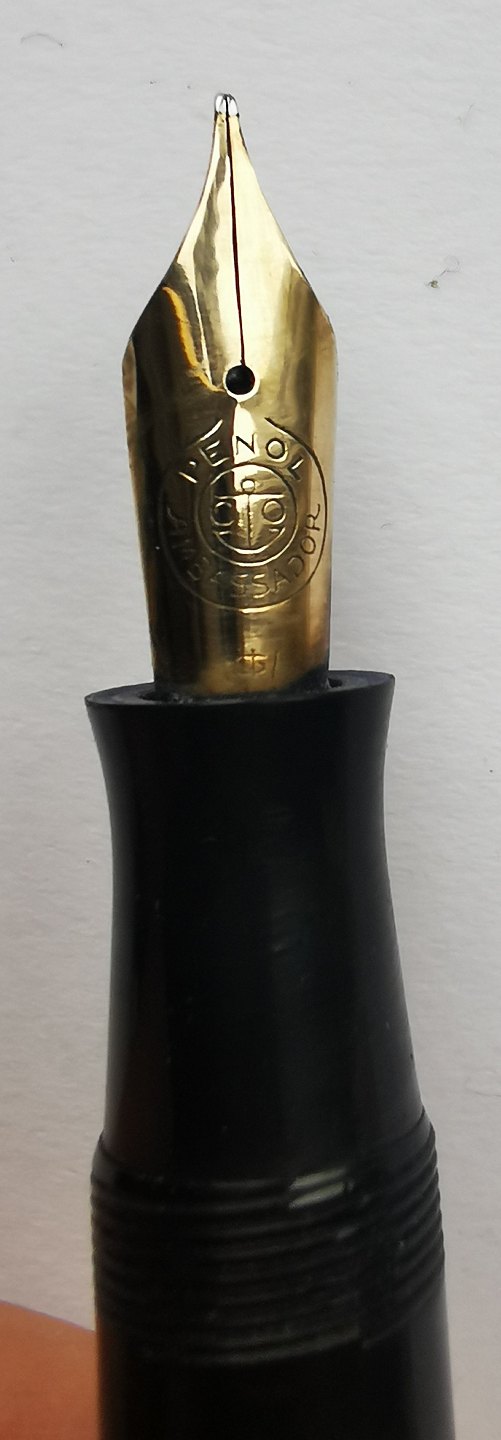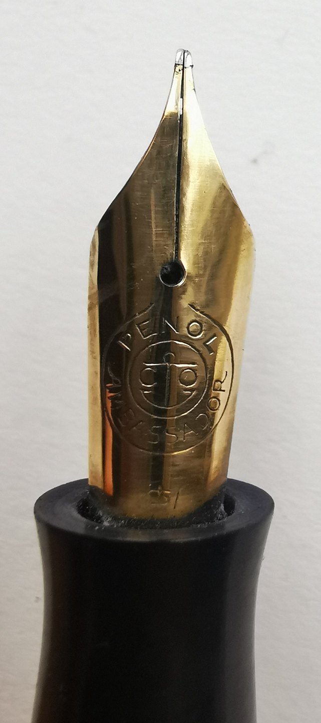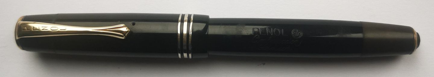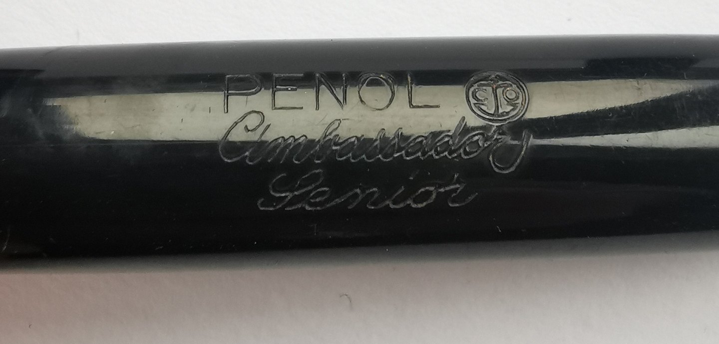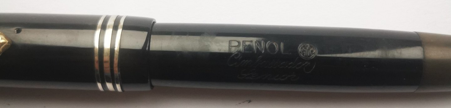 STOR CIGAR: Sort Penol Ambassador Senior fyldepen. Produceret i Danmark i 1940´erne. Fremstår i god stand uden skader eller reparationer. Alle dele originale fra Penol fabrikken. "Push button" blæk påfyldningssystem. Ambassador nib. L. 13½ cm.