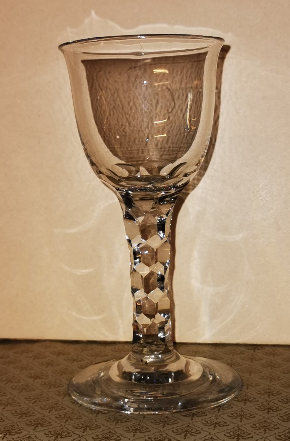 Smukt vinglas med facetteret stilk. Fremstillet i første halvdel af 19. århundrede i mellem-europa. I perfelt stand. Mål: H. 13½ cm