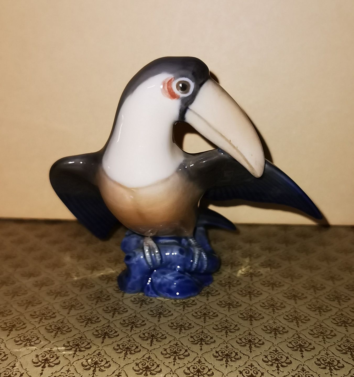 Porcelænsfigur af fugl - Tukan. Produceret hos Royal Copenhagen. I perfekt stand. 1. sortering. Fabriksmærket på bunden. Modelnummer 2574. Mål: H. 9½ cm.