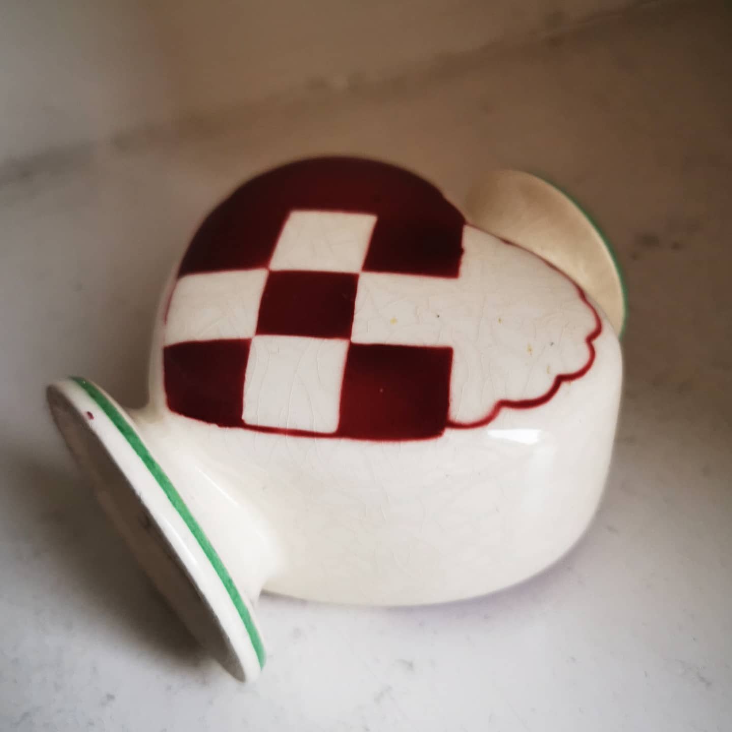 Rødt Aluminia hjerte i fajance. Ingen skader eller Reparationer. Fabriksmærket på bunden