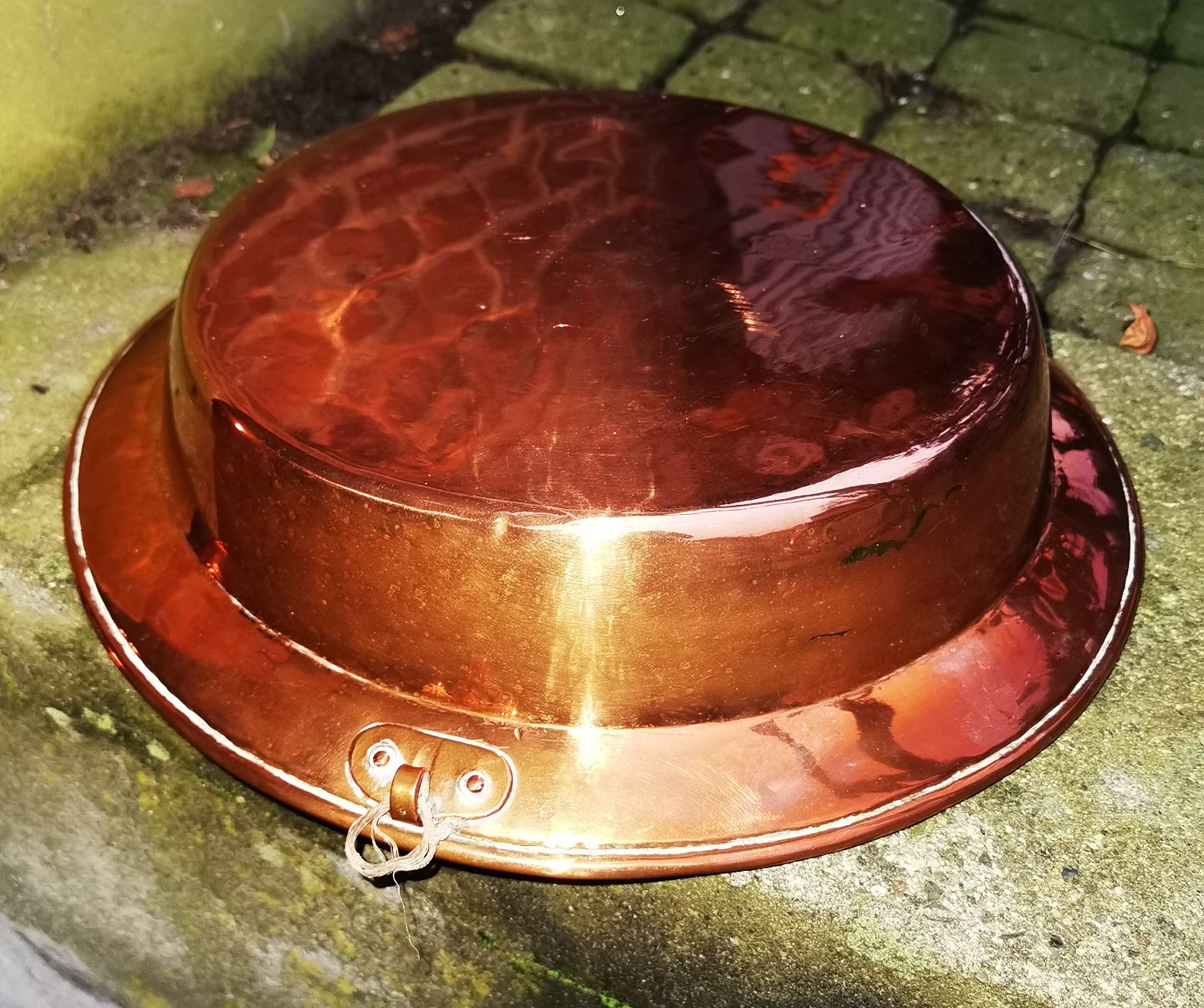 Copper tray with high sides 19th. century. Measures: 8 cm high and 37½ cm in diameter.
