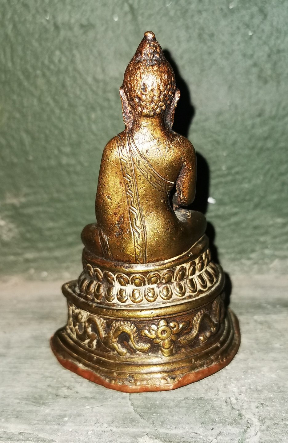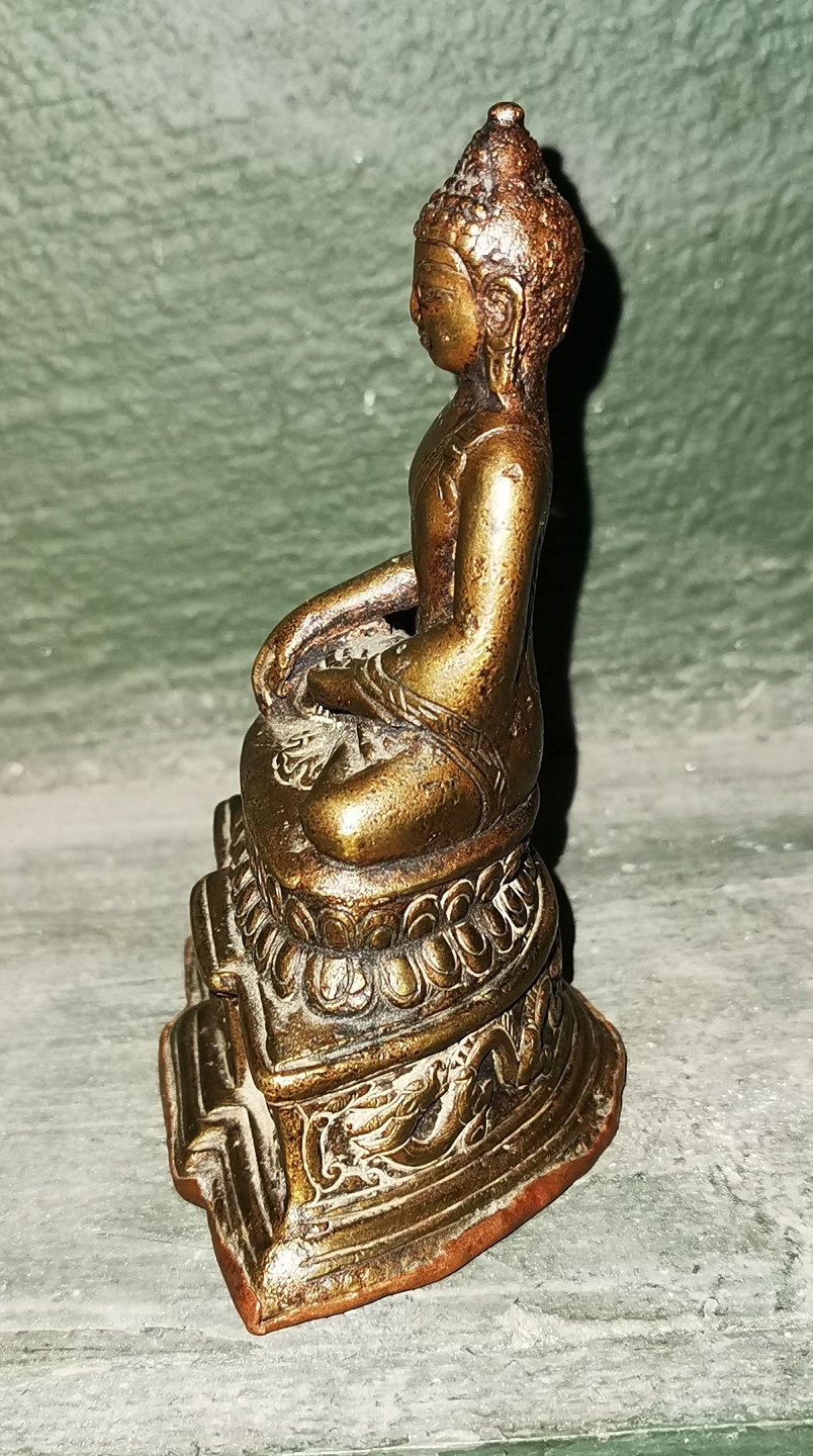 Figur af buddha i metal. Fremstillet i første halvdel af 20. århundrede. I god stand. Ingen skader eller reparationer. H. 11½ cm.