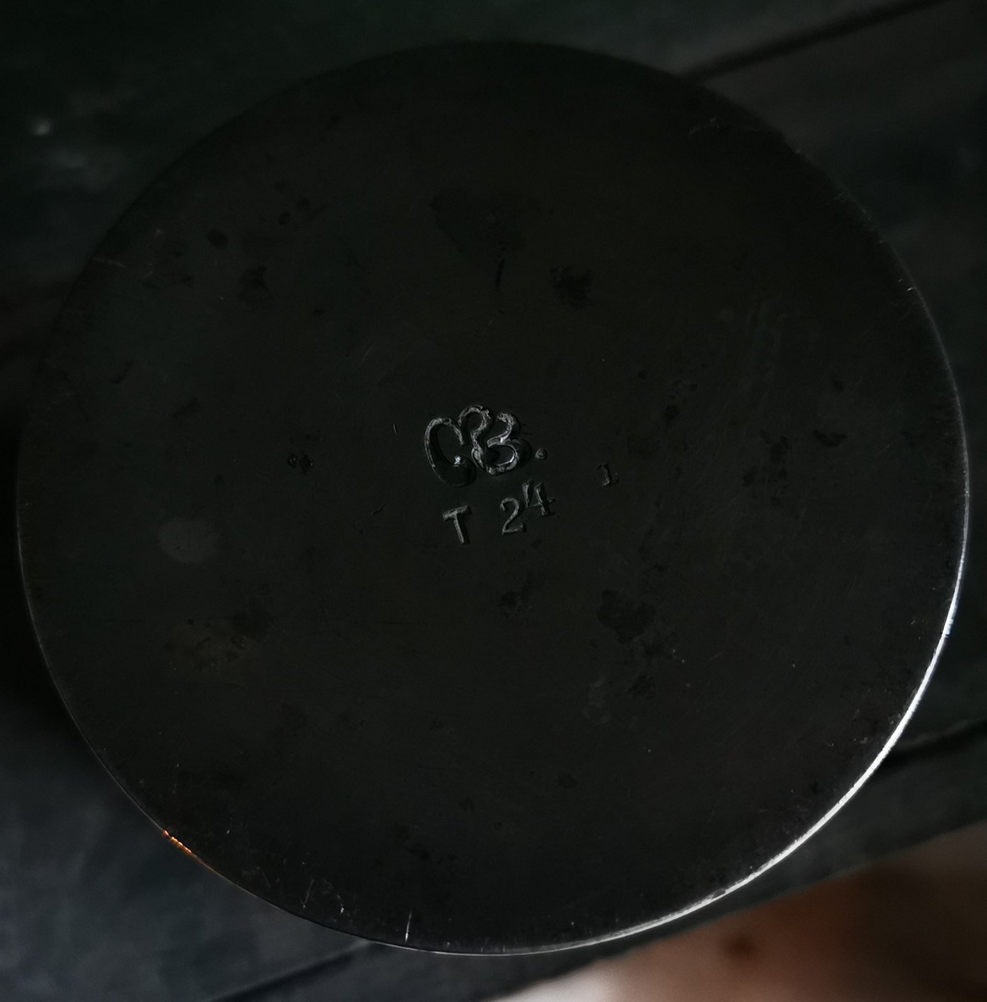 Mogens Ballin vase i tin fra skønvirkeperioden i Danmark omkring 1900. Blomsterdekoration på forsiden ! Fabriksmærket på bunden med MB samt modelnummer T24. I god stand uden skader eller reparationer. Mål: H. 11 cm.