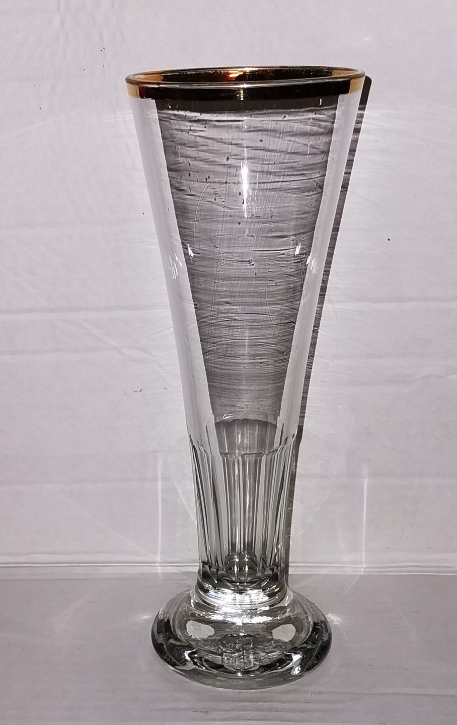 Højt ølglas med guldkant og facetslibning. I god stand. H. 22½ cm. Nogle med brugsspor på guldet.