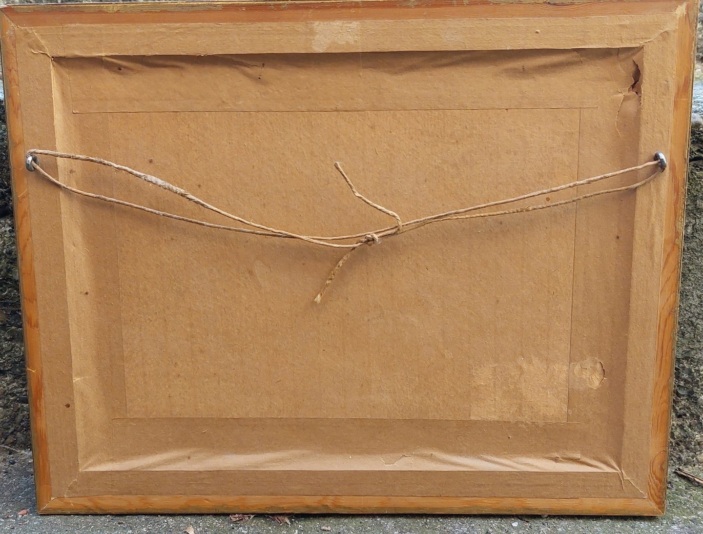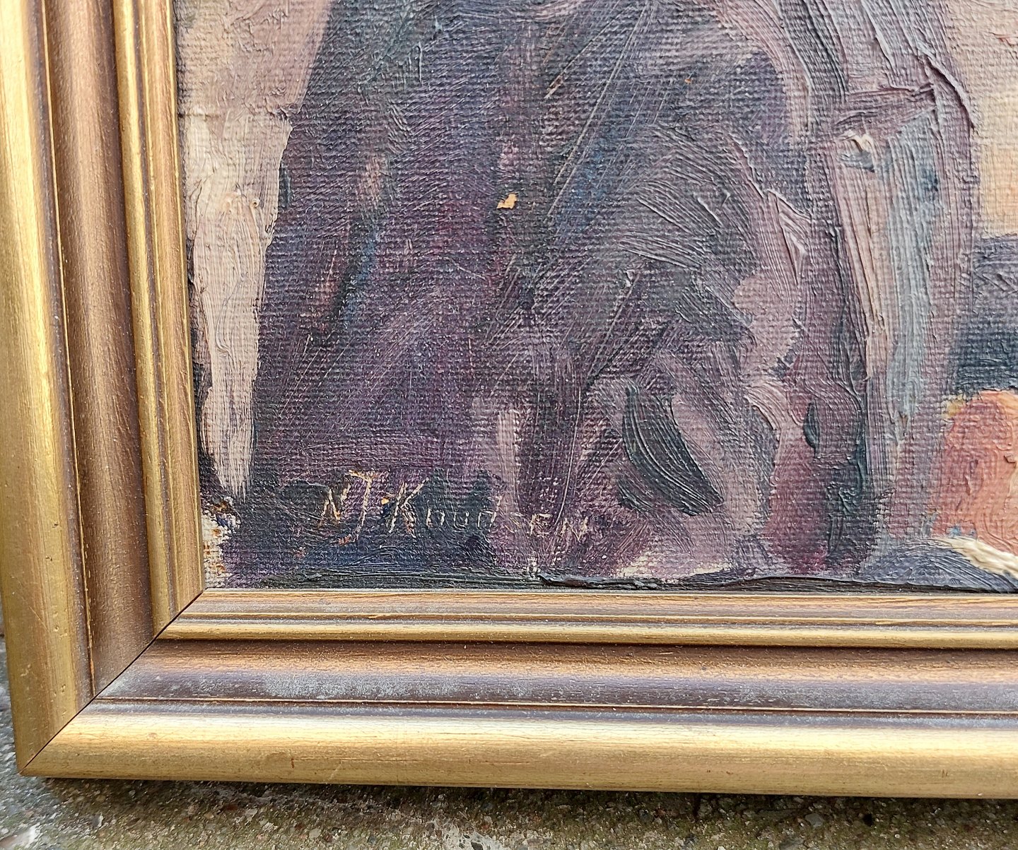 Olie maleri: Mand sidder ved skrivebordet og læser imens han ryger på sin pibe. Malet af ubekendt kunstner ca. 1930. I god stand. Mål: 24½ x 31½ cm (9.64 x 12.40 inches)