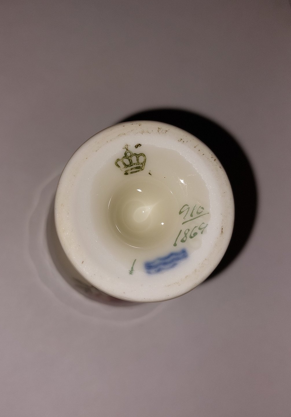 Æggebæger i porcelæn fra Royal Copenhagen Frisenborg (Frijsenborg) modelnummer 1869. I perfekt stand. H. 6,5 cm. I alt haves tre stk.