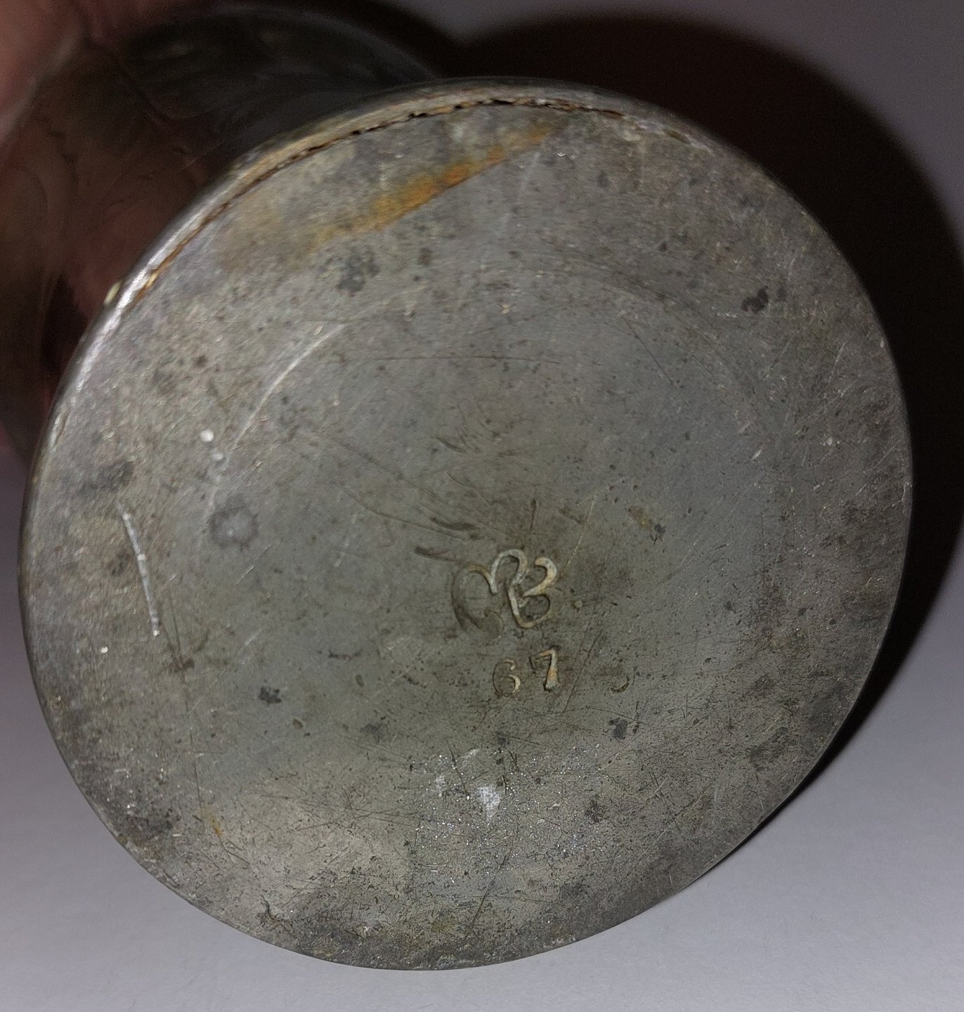 Vase i tin med skønvirkedekoration fra Mogens Ballin´s værksted i begyndelsen af 20. århundrede. Fremstår i god stand. Lidt brugsspor indvendigt. Fabriksmærket på bunden med MB samt modelnummer. H. 20 cm (7.87 inches).