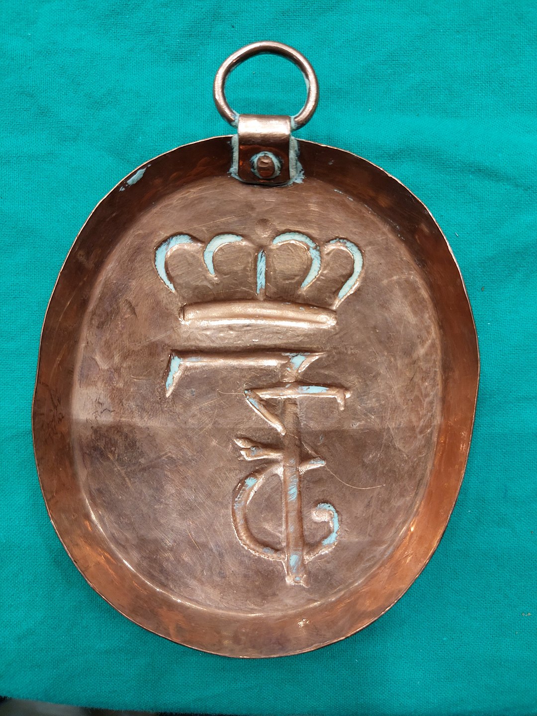 Kong Frederik III kobberskilt. I god stand. H. 10,5 cm B