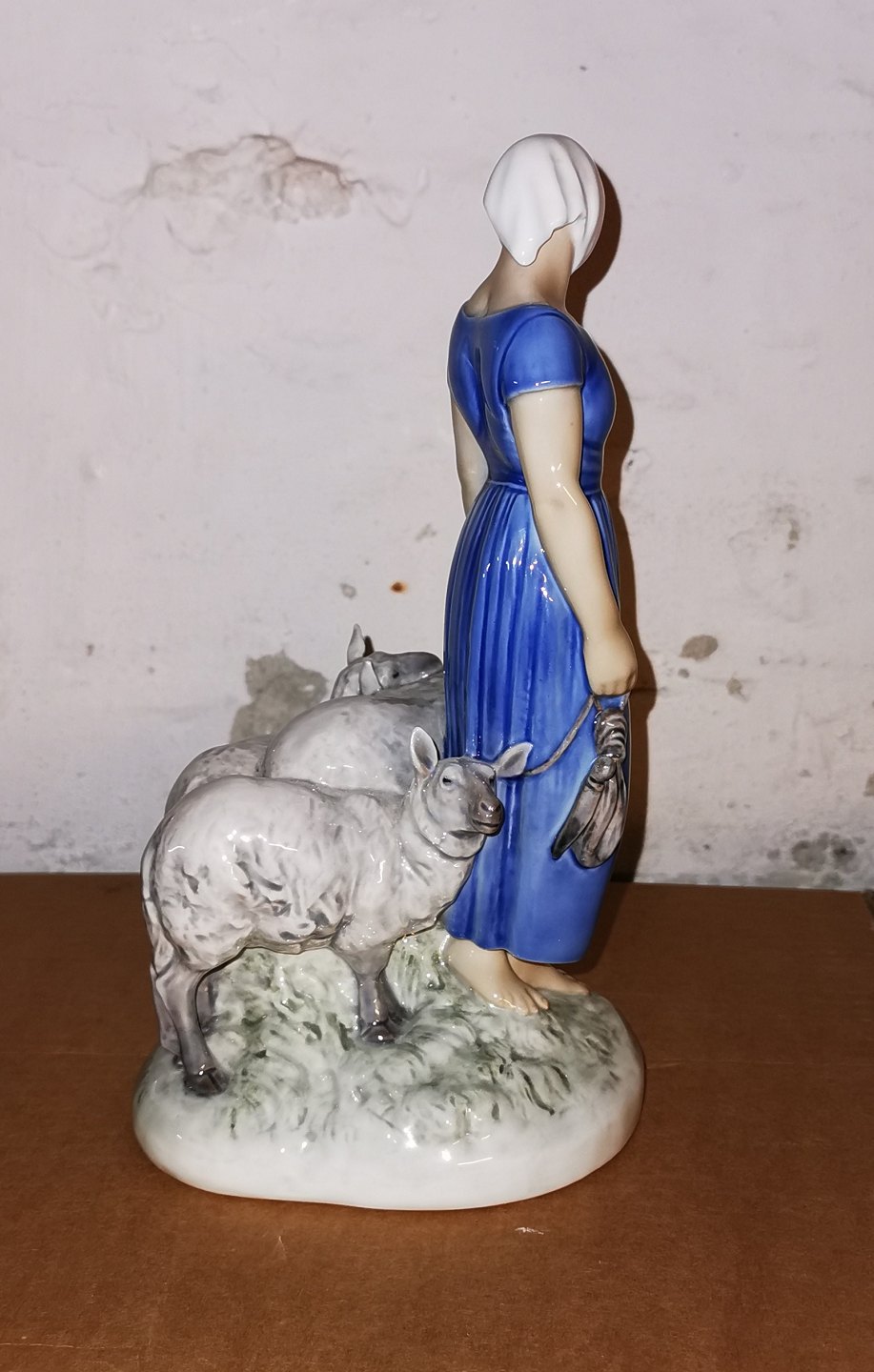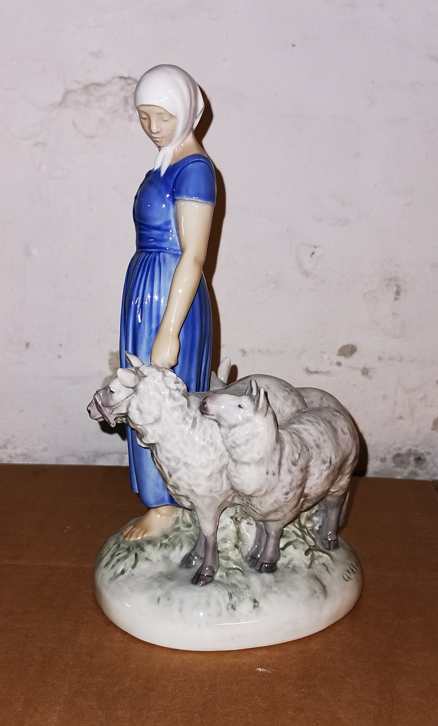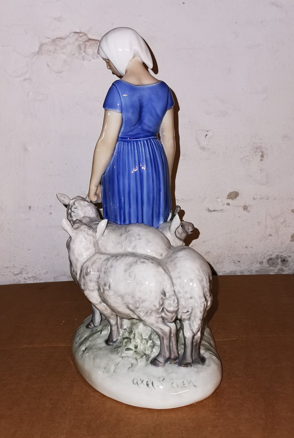 Bing & Grøndahl figur i porcelæn af "Pige med får". Designet af Axel Locher. Modelnummer 2010. I god stand. Ingen skader eller reparationer. 1. sortering. Fabriksmærket på bunden. H. 27½ cm (10.82 inches).