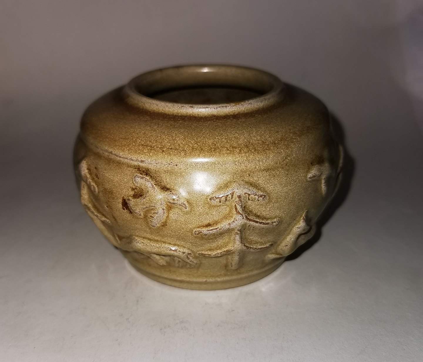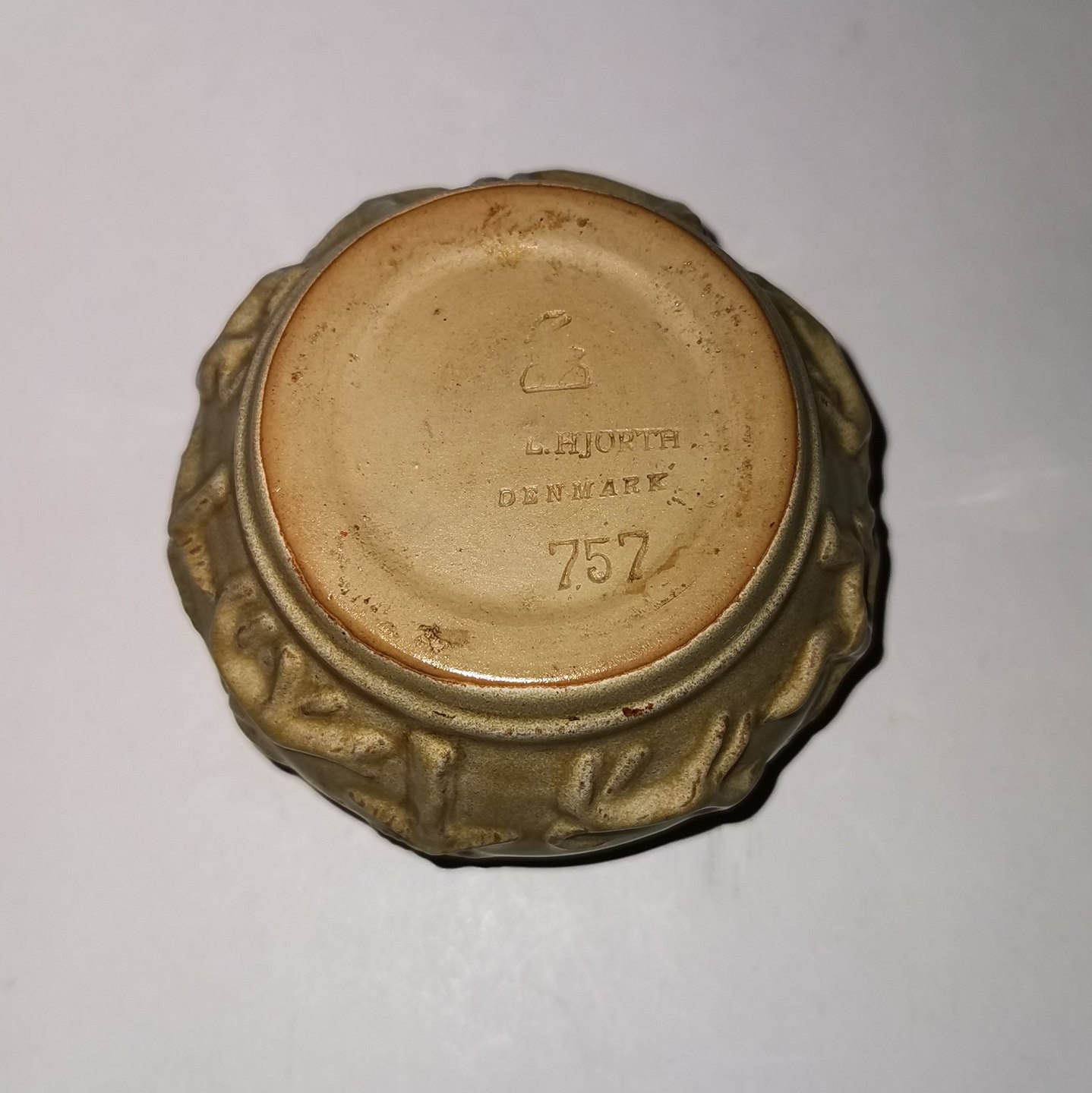 Vase in brown glaze, with jumping deer in relief, from the Bornholm factory Lauritz Hjorth. In good condition. no damage or repairs. H. 7 cm (2.75 inches).