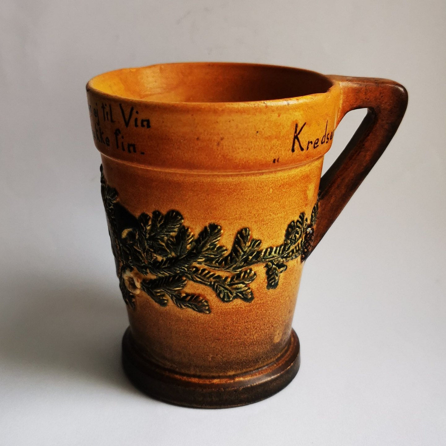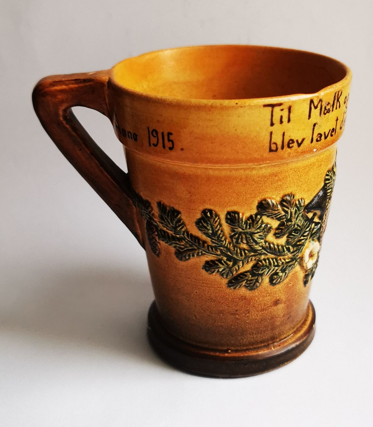 P. Ipsen krus i keramik med dekoration i Skønvirkestil