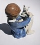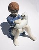 Charmerende figur i porcelæn af siddende ung pige med kat i skødet. Formgivet af John Calster for Royal Copenhagen. Fremstår i god stand uden skader eller reparationer. Fabriksmærket på bunden. 1. sortering. Modelnummer 4631. H. 15 cm.