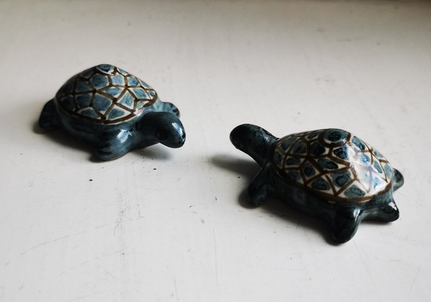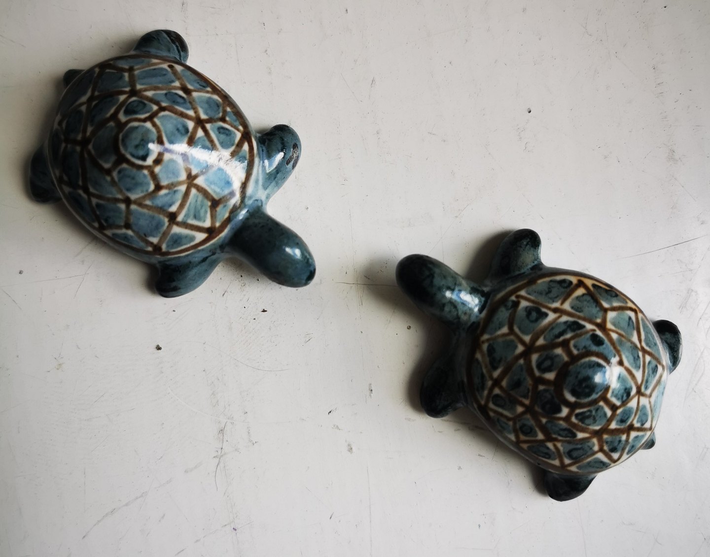 Skildpadde i keramik fra Lauritz Hjorth, Bornholm. Fremstår i god stand. Sælges samlet for kr. 350,- Mål: H. 2-2½ cm L. 5½ cm 3½- B. 4 cm
