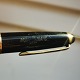 Sort Montblanc # 206 fyldepen. Push button filler. Fremstillet I Danmark på licens omkring 1950. Fremstår I god stand uden skader eller reparationer. Almindelig brugsspor på overfladen. Alle dele originale Montblanc fra produktionsperioden,med bl.a flot nr. 6 spids i 14 karat guld. L. 13,5 cm